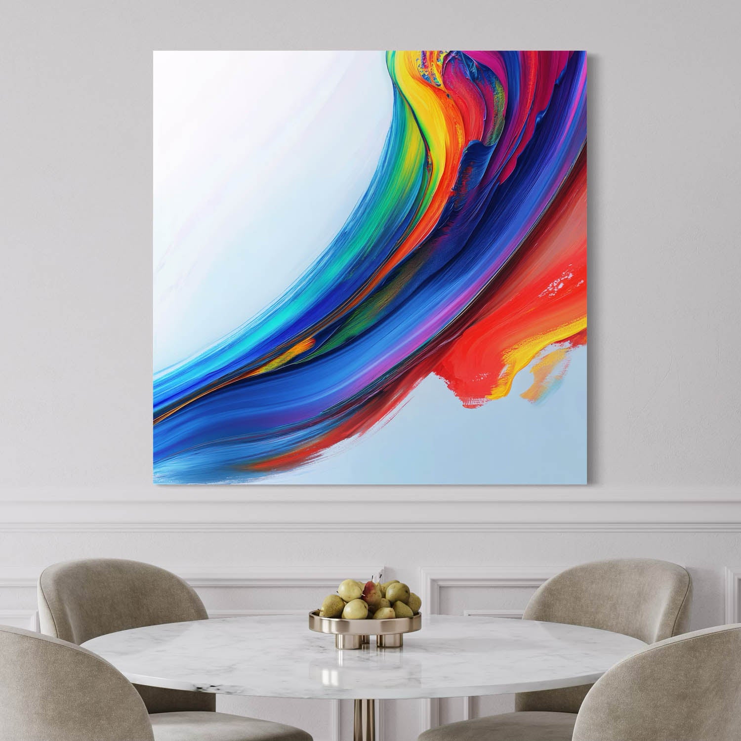 Energy and movement come alive in this painting. Rich colors and textured layers create rhythm and vibrance, perfect for bold modern interiors.