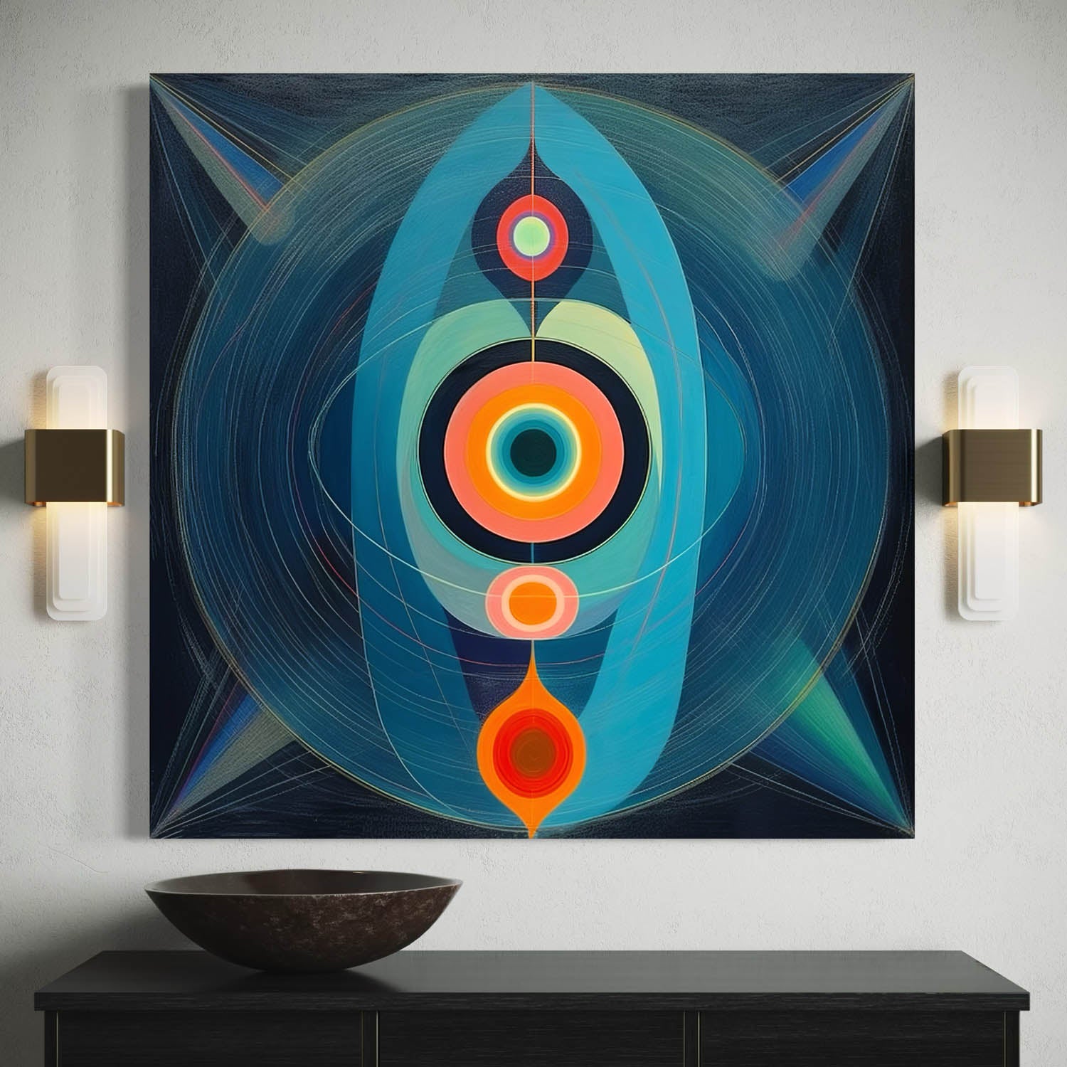 This beautiful geometric artwork symbolizes the flow of energy in the journey of inner awakening through vibrant abstract designs. Perfect for bringing a sense of balance and positivity to your space.