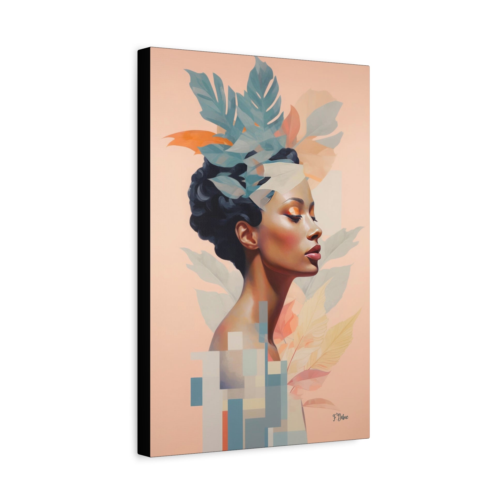 Experience the allure of subtlety. Our wall artwork showcases a woman with leaves, a fusion of minimalist charm and natural beauty.