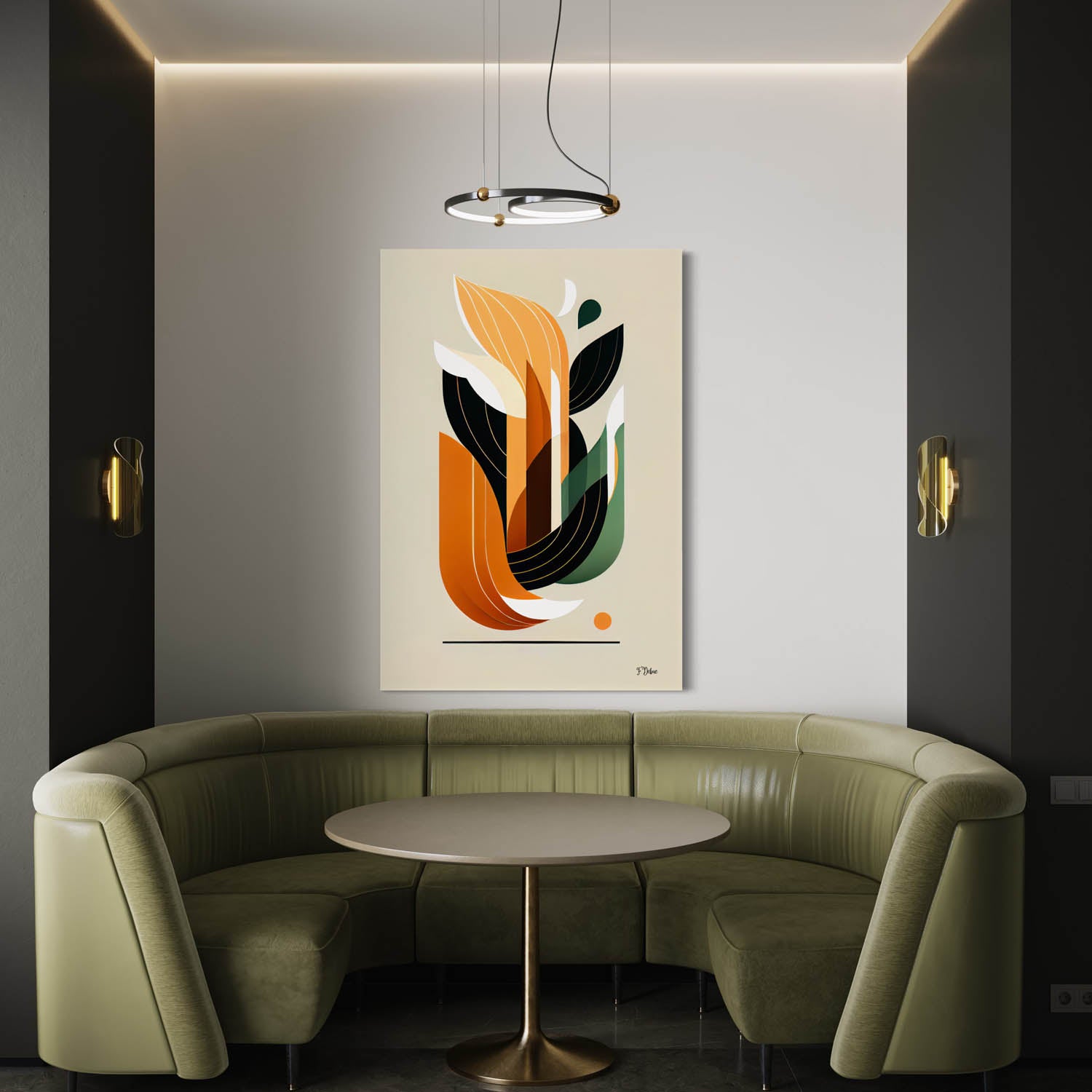 This abstract artwork is a vibrant and energetic composition of bold colors and shapes.  Decorate your home with this exquisite wall art.
