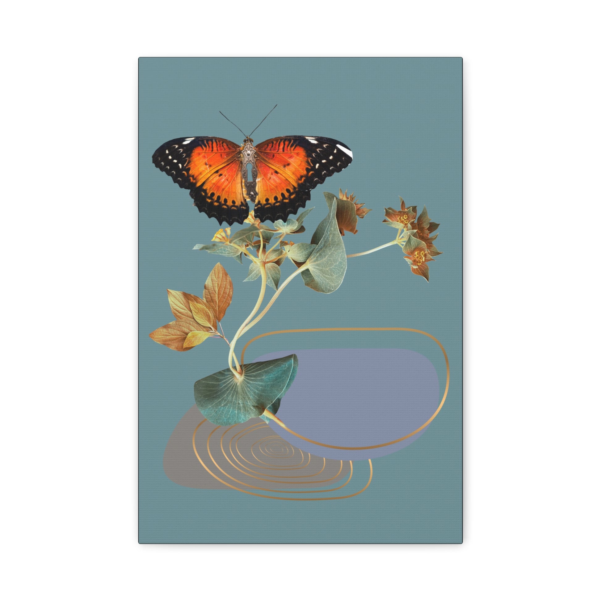 This fun and modern butterfly design with its vibrant shades of blue and orange make it a captivating piece that would be great for any room.
