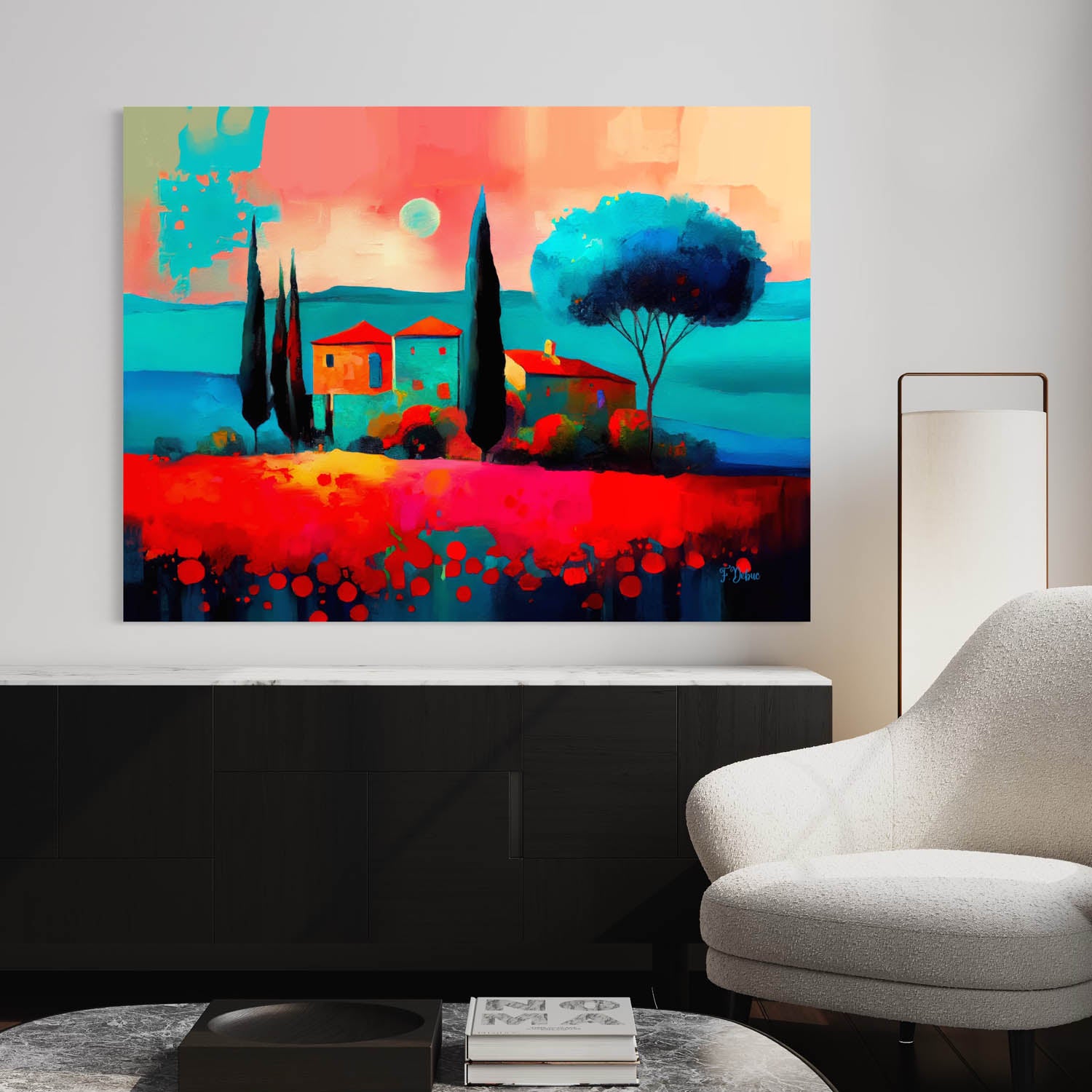 The lively and tranquil scene captures the essence of this vibrant landscape wall art, providing a serene and refreshing atmosphere for your walls.