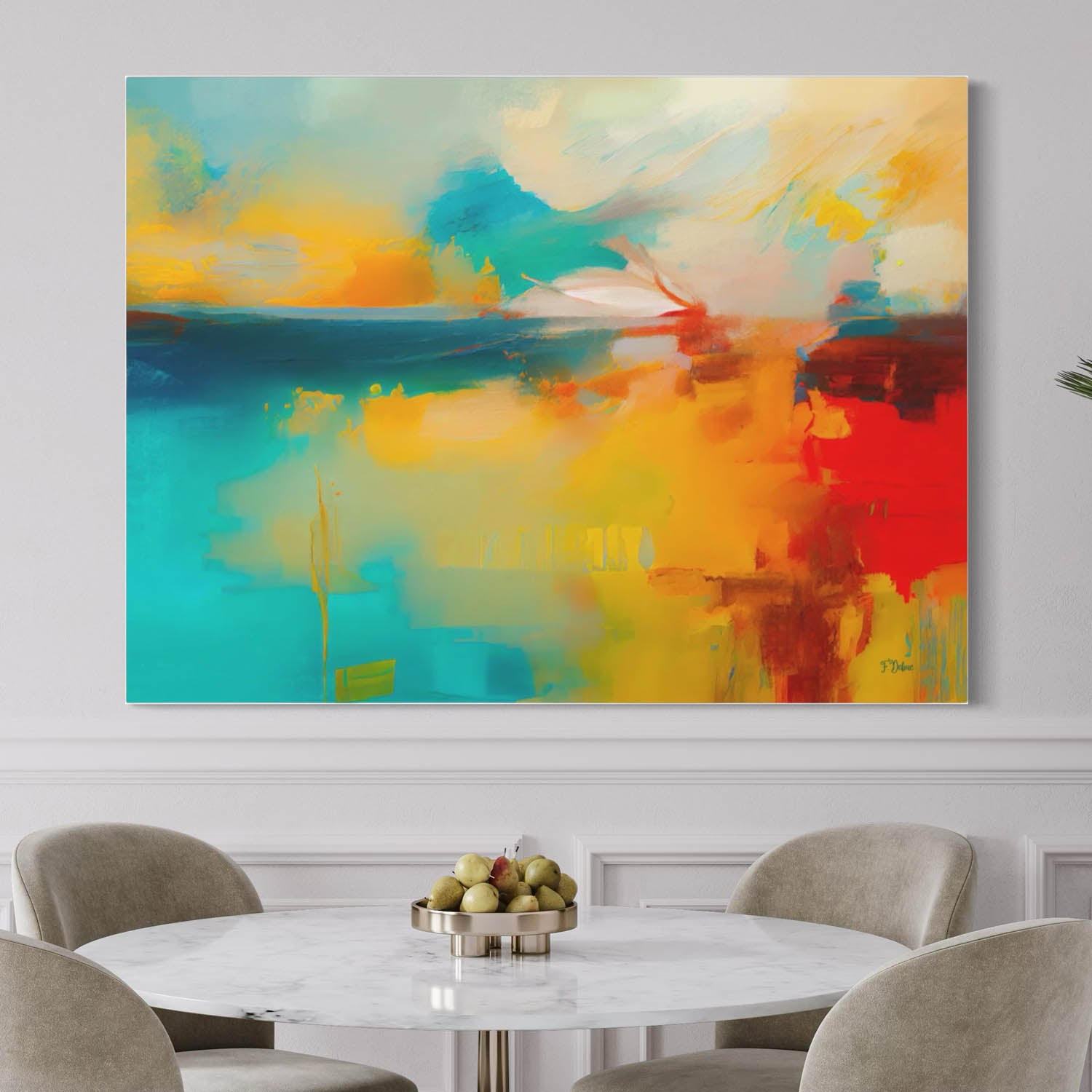 This dreamy abstract landscape art combines soft colors and bold forms. Perfect for those who appreciate the abstract interpretation of nature. An ideal choice for modern homes and offices.
