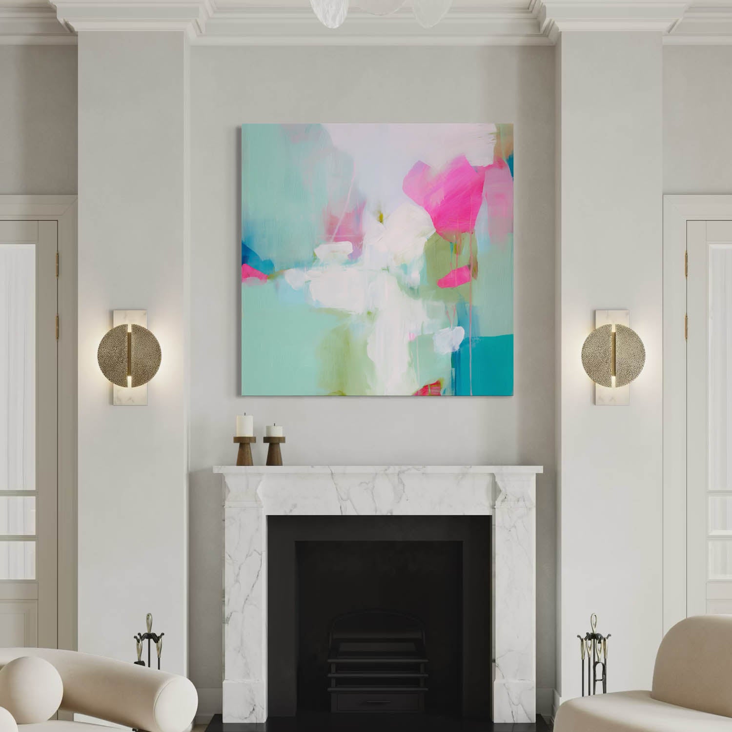 This painting captures emotion through stillness. Subtle layers of soft green and cream convey a sense of balance and inner peace, making for a minimalist statement in modern homes.